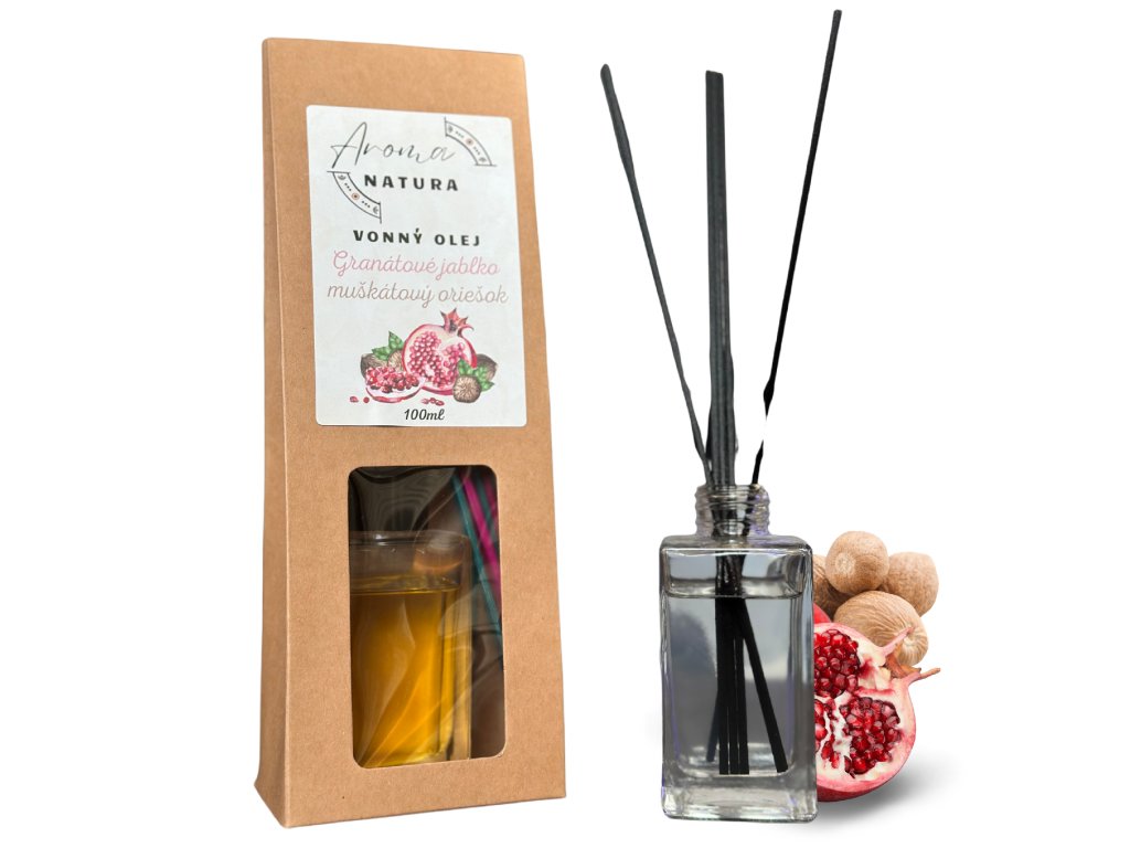 Vonný Olej s Tyčinkami - Gratnátové Jablko a Muškátový Oriešok